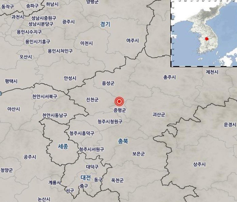 청주기상지청에 따르면 이날 오전 5시59분 35초 충북 증평군 북북동쪽 7km 지역에서 규모 2.2의 지진이 발생했다.