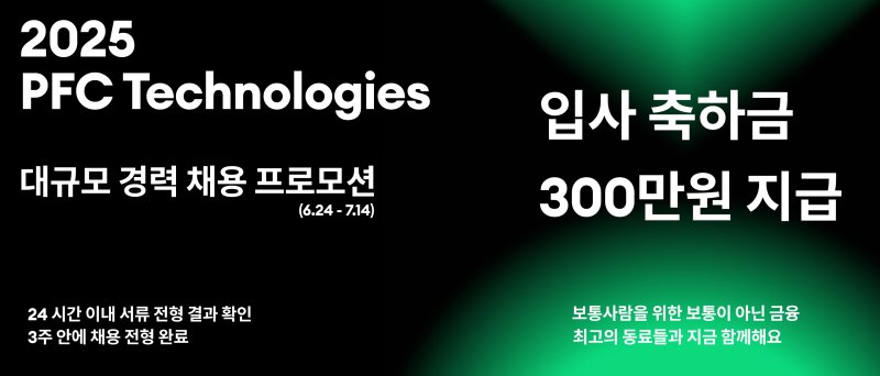 최종 합격자에게는 입사 3개월 후 300만원의 입사 축하금이 지급된다. 채용 프로모션 참여는 PFCT 채용 홈페이지에서만 가능하다. 포털 사이트에 'PFCT 채용'으로 검색하면 모집 분야 및 상세 공고를 확인할 수 있다.