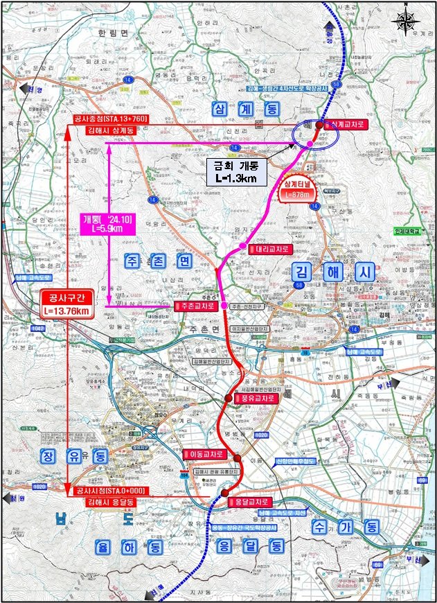 무계~삼계 우회도로 건설사업은 장유동 응달에서 삼계동까지 총 13.76㎞를 연결하는 사업비 4772억원 규모 공사다.