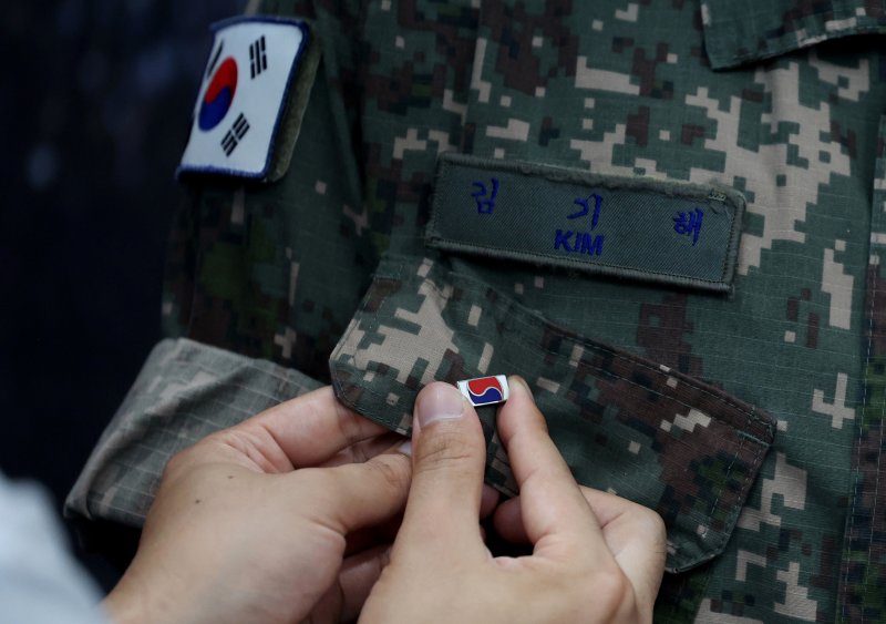 [서울=뉴시스] 김진아 기자 = 25일 서울 용산구 서울역 대합실에서 진행된 보훈부와 한화, 6·25전쟁 75주년 기념 '121723 끝까지 찾아야 할 태극기' 캠페인에서 군 장병들이 태극기 배지를 달고 있다. 보훈부는 6·25전쟁 75주년 계기 한화의 K9 자주포 철로 지금까지 돌아오지 못한 국군 전사자 121,723명의 호국영웅을 상징하는 12만 1,723개의 고유번호가 부여된 태극기 배지를 제작, 무료 배포했다. 2025.06.25. bluesoda@newsis.com [서울=뉴시스] 류현주 기자 = 국가보훈부는 6·25전쟁 75주년을 맞아 올해까지 여전히 가족의 품으로 돌아오지 못한 국군 전사자 12만1723명을 기억하는 '121723 끝까지 찾아야 할 태극기 캠페인'을 6월 호국보훈의 달 동안 전개한다.