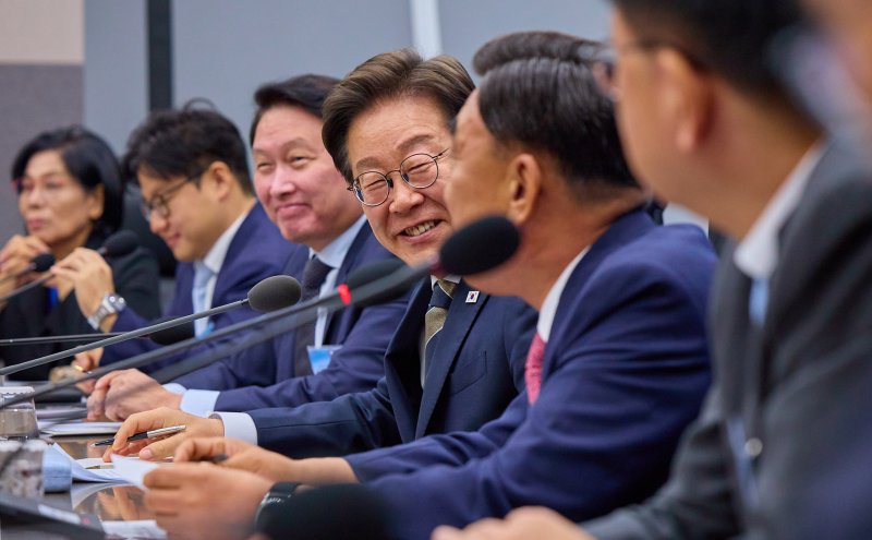 이재명 대통령이 20일 울산 울주군 울산전시컨벤션센터에서 열린 인공지능(AI) 글로벌 협력 기업 간담회에서 참석자 발언을 듣고 있다. (대통령실 제공. 재판매 및 DB 금지) 2025.6.20/뉴스1 /사진=뉴스1