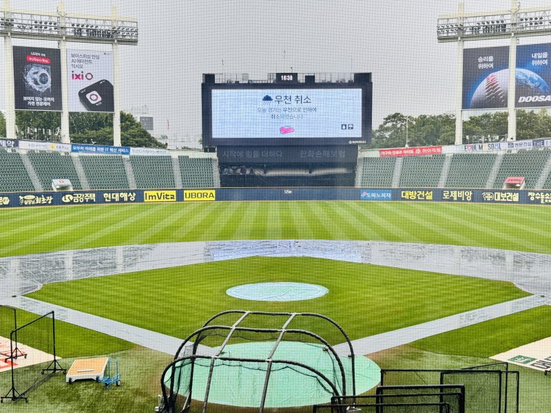 (서울=뉴스1) 서장원 기자 = 북상한 장마전선의 영향으로 프로야구 잠실과 수원 경기가 우천 취소됐다.
