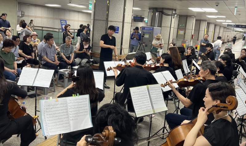 오전 11시부터 40여분 간 진행된 공연은 유명 클래식 곡과 대중에게 친숙한 멜로디가 오케스트라의 풍성한 선율을 선사했다. 지하철 이용객들이 가던 걸음을 멈추고 공연에 귀를 기울이는 등 따뜻한 감동을 나눴다.