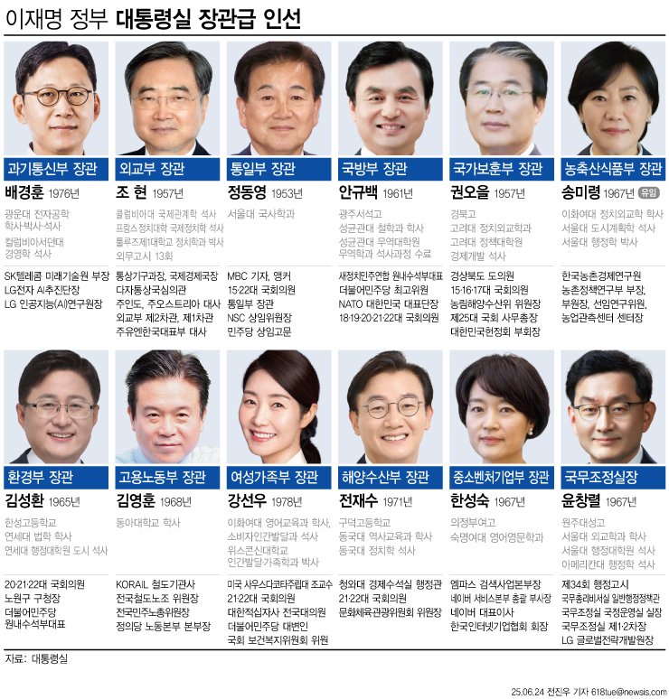 이 대통령은 지난 23일 11개 부처 및 국무조정실장(장관급) 인선을 단행했다.
