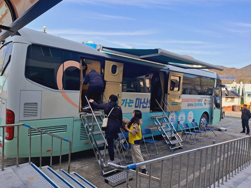 찾아가는 마산의료원 검진사업은 경상남도와 마산의료원이 의료서비스 불균형 해소를 위해 의료접근성이 떨어지는 농어촌 지역을 대상으로 경상대학교 교수 등 의료진이 방문해 무료 검진을 시행한다.