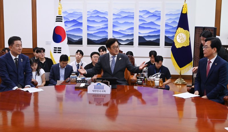 김병기 민주당 원내대표는 전날인 26일 오후 국회의장실을 찾아 우 의장에게 예결위원장 등 상임위원장 선출과 김민석 국무총리 후보자 인준을 위해 각각 27일과 30일 본회의를 열어달라고 요청했다.