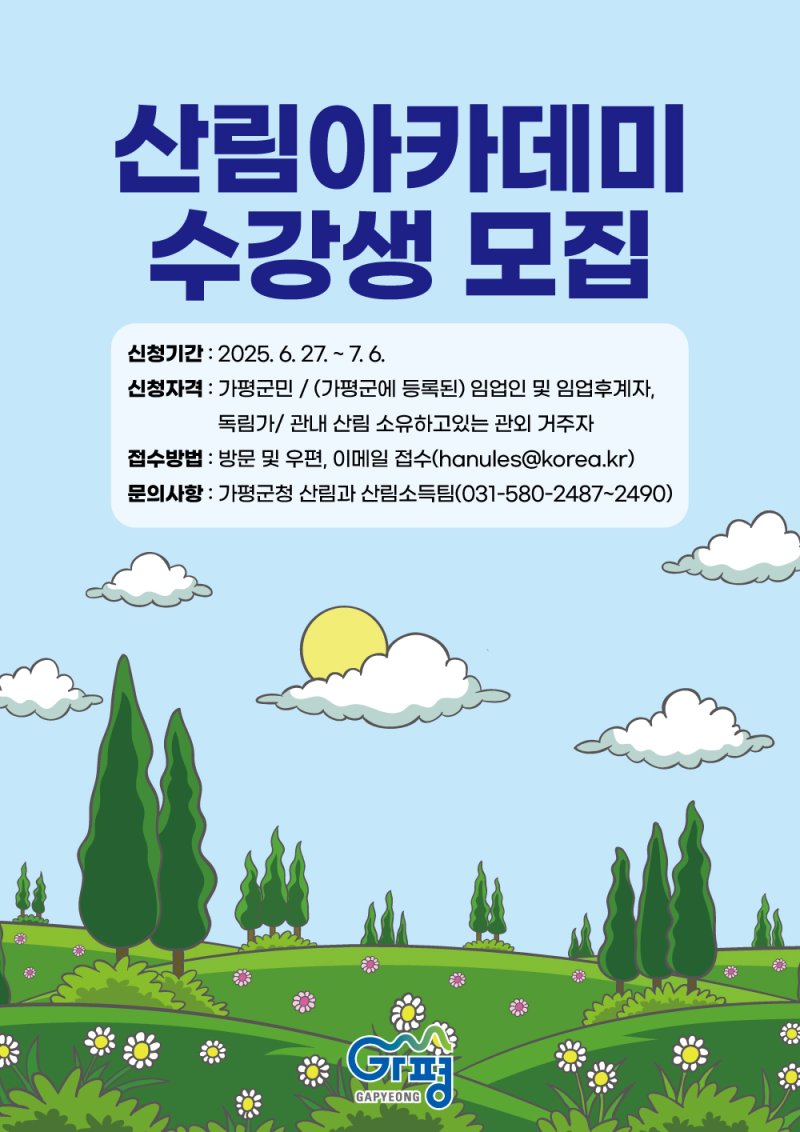 대상자는 가평군에 주소를 둔 군민, 군에 등록된 임업인·임업후계자·독림가, 가평군에 산림을 소유한 관외 거주자로, 총 40명을 모집해 교육을 진행한다.