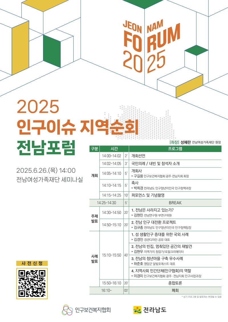 [광주=뉴시스]김혜인 기자 = 인구보건복지협회는 지난 26일 전남여성가족재단에서 '2025 인구이슈 지역순회 전남포럼'을 성황리에 개최했다고 27일 밝혔다.