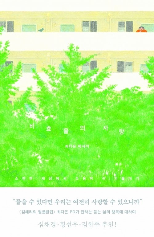 산문집 '비효율의 사랑'은 당연하게 여겼던 '듣기'가 얼마나 소중하고 강력한 '사랑'의 방식인지를 알려주면서 조용히 귀 기울이는 삶이 주는 행복과 희망을 표현했다.