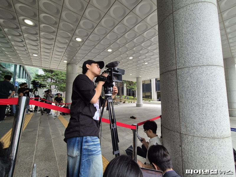 이날 내란 특검팀이 위치한 서울고등검찰청사의 경비는 삼엄했다. 법원 쪽 문을 제외한 모든 출입문이 폐쇄됐고 출입이 허가된 인물들만 제한적으로 통행할 수 있게 했다.