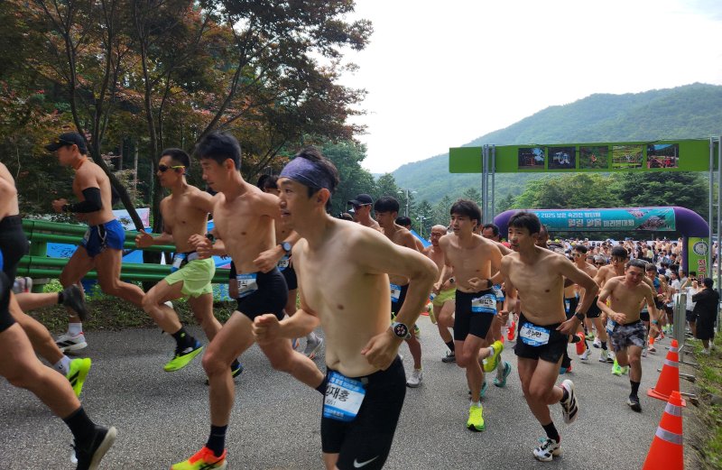 28일 충북 보은군이 후원하고 전국마라톤협회가 주최·주관한 '2025 보은 속리산 말티재 힐링 알몸 마라톤대회'에 전국의 아마추어 마라토너 850여명이 참가했다.