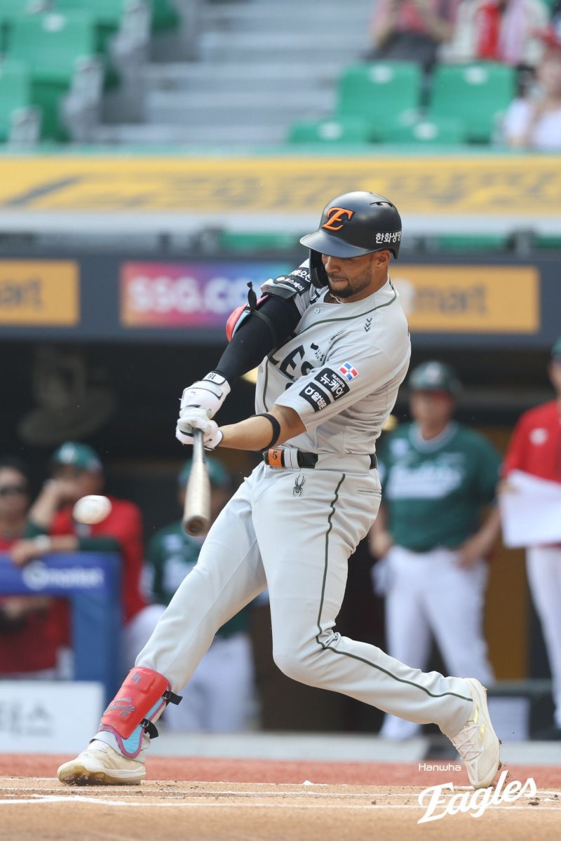 (인천=뉴스1) 서장원 기자 = 한화 이글스 대체 외국인 타자 루이스 리베라토가 마수걸이 홈런포를 쏘아 올렸다.