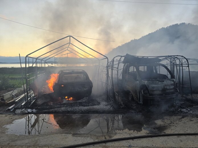 서산소방서에 따르면 이 불로 비닐하우스와 포터 전기차, 하이브리드 승용차가 전소되는 등 약 8000만 원의 재산 피해가 발생했다.