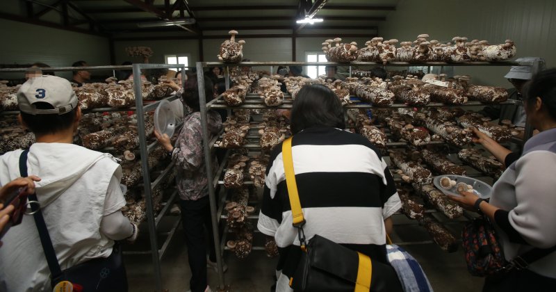 여행객들은 영상 12도의 재배사에서 싱싱하게 자라고 있는 버섯을 직접 따 줄기를 뜯어 먹어보고, 식용유를 두른 프라이팬에서 구워서도 먹어보고, 농장에서 준비한 버섯밥에 간장을 둘러 슥슥 비벼 먹는 푸드 체험의 호사에 즐거워했다.