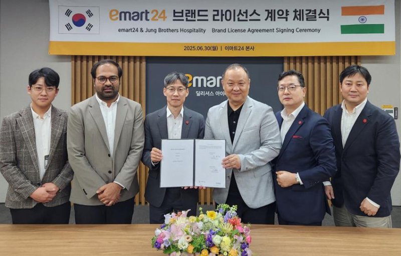 이마트24는 30일 인도의 1세대 한인 사업가 피터 정이 대표를 맡고 있는 '정브라더스'와 브랜드 라이선스 계약을 체결했다. 현지 부동산 개발사인 솔리테어는 파트너사로 참여했다.