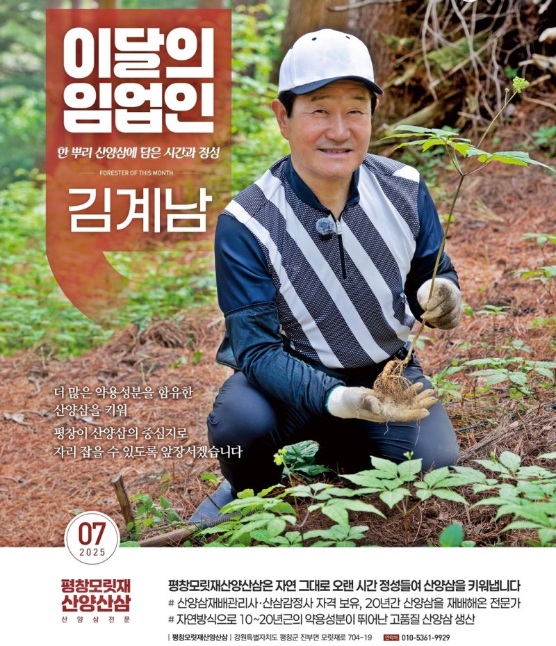(대전=연합뉴스) 이은파 기자 = 산림청은 '이달(7월)의 임업인'에 강원도 평창에서 산양삼을 재배하는 김계남(72) 평창모릿재산양산삼 대표를 선정했다고 1일 밝혔다.