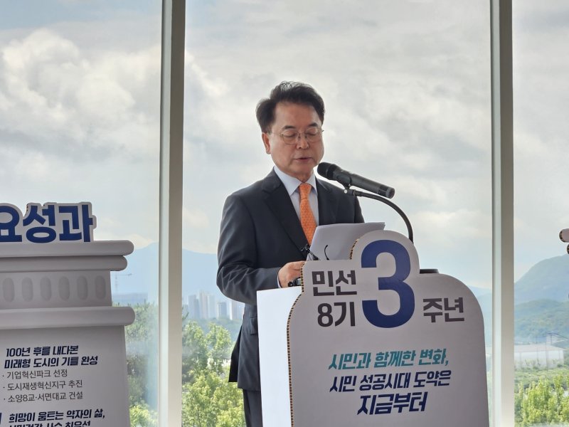 이와 관련 시는 "민선 8기 3주년을 맞아 시민 정책 만족도 조사를 실시한 결과, 정책 전반에 대한 평균 만족도가 66.4점이었다"고 밝혔다. 시는 남은 1년을 '성과 완성과 도약의 출발점'으로 정하고 연구개발특구 지정, 기업혁신파크 승인, 호수지방정원 착공, GTX-B 국가계획 반영, 소양 8교 추진 등에 나선단 방침이다.