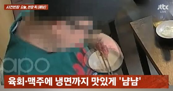 1일 JTBC 사건반장에 따르면 남성 A씨는 지난 6월 17일 오후 1시 30분쯤 해당 식당에 들어와 육회, 냉면, 맥주 등 8만원어치의 메뉴를 주문했다.