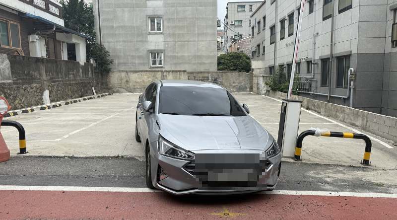 사진엔 멈춰 선 회색 승용차가 보인다. 위로 올라간 차단기를 보면 이 차량이 주차장으로 들어서는 입구에 세워진 것으로 보인다.