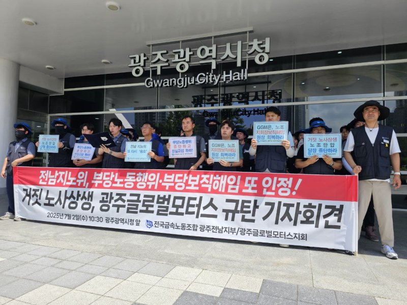 그러면서 "사측은 행정소송을 제기하며 문제해결에 나서기는커녕 법적 분쟁에만 골몰하고 있다. 사내 노조활동을 인정할 수 없다는 경영진은 끊임없이 주주단 입장을 내세우고 있다"며 "강기정 광주시장과 경영진은 무의미한 소송전을 그만두고 노조를 인정하고 대화에 나서라. 조속히 2024년 임단협 타결에 나서고 GGM을 2교대로 전환, 생산을 확대해야 한다"고 촉구했다.