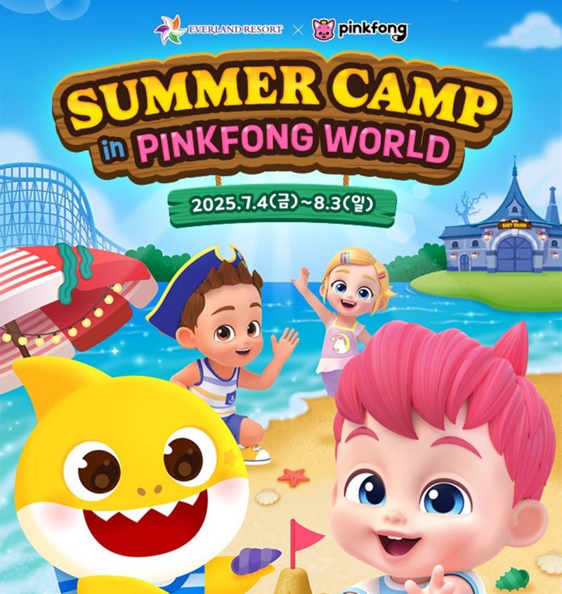 올여름 에버랜드에 선보이는 '썸머 캠프 인 핑크퐁 월드'에서는 전 세계 유튜브 조회수 1위 기록을 보유하고 있다. 올해 10주년을 맞은 '아기상어'와 11개국 넷플릭스 키즈 부문 1위에 오른 '베베핀' 등 더핑크퐁컴퍼니의 인기 지식재산권(IP)을 다채롭게 체험할 수 있다.