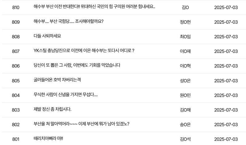 중·고생 학부모라는 한 시민은 "아이들이 다들 서울로 떠나고 있다. 해수부 이전 소식에 희망을 가지는 부모들이 많은데 국민의힘 의원들에게 부산은 정말 중요하기나 하나. 권력싸움에 눈이 멀었나"라고 비난했다.