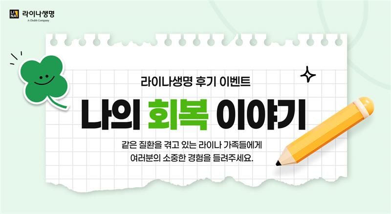 '나의 회복 이야기'라는 제목의 이번 캠페인은 자신이 겪은 질병의 진단, 치료, 회복 및 경제 이야기 등 모든 경험에 대해 자유롭게 서술하는 방식으로 진행된다. 라이나생명 고객이 아니더라도 질병을 겪고 회복한 경험이 있는 사람이라면 누구나 참여할 수 있다. 참가자에게는 추첨을 통해 커피 쿠폰이 제공되며, 베스트 후기로 선정된 참가자에게는 백화점 상품권이 증정된다.
