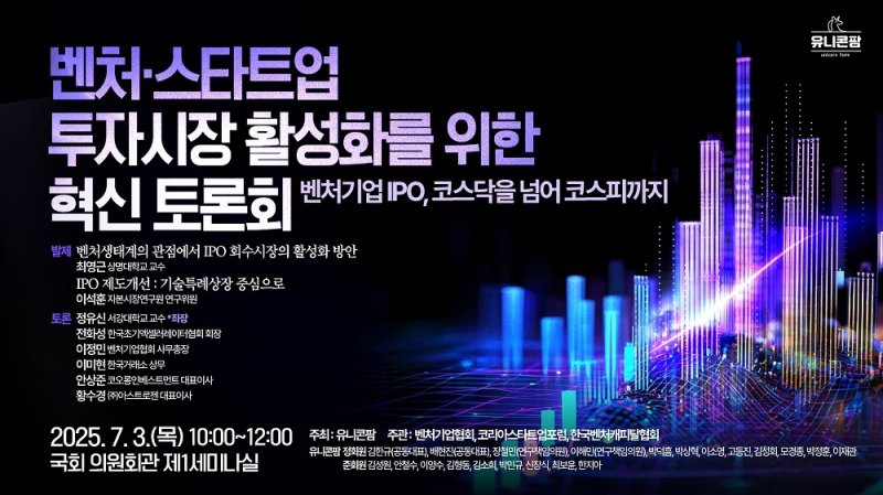 토론회는 벤처·스타트업의 성장을 가로막는 상장제도와 자본조달 구조의 한계를 짚고 실효성 있는 제도 개선 방안을 논의하고자 마련됐다.
