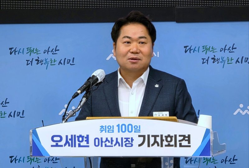 재선거로 아산시장에 당선돼 3일 취임 100일 맞은 오세현 시장은 시청 중회의실에서 기자회견을 열고 이같이 말했다.