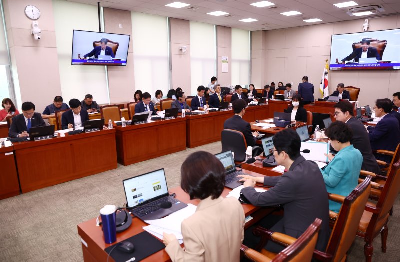 법사위는 이날 오전 전체회의를 열어 전날 법안심사소위원회에서 넘어온 상법 개정안을 의결했다. 개정안은 기업 이사의 충실 의무 대상을 회사 및 주주로 확대하고, 감사위원 선임 시 최대 주주와 특수 관계인의 의결권을 합산 3%로 제한하는 내용이다. 상장회사의 전자 주주총회를 의무화하고, 사외이사를 독립이사로 전환하는 내용도 담겼다.