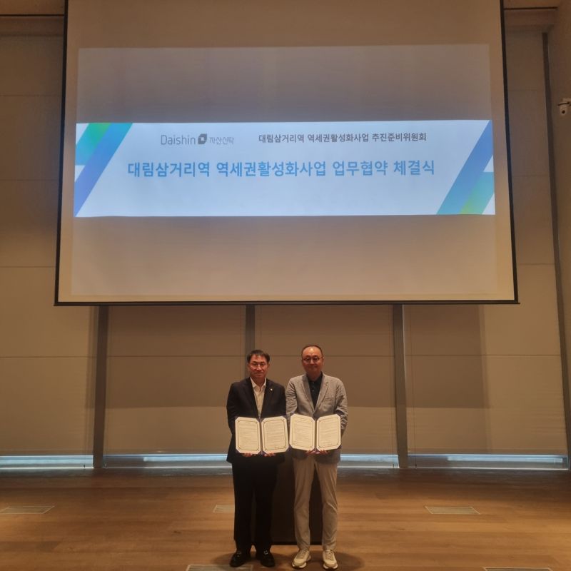 대신자산신탁 관계자는 “대림삼거리역 일대는 입지 여건이 뛰어나고 토지등소유자의 사업 참여 의지가 매우 높다”며 “대신자산신탁의 높은 전문성과 투명성을 기반으로 신속하고 안정적인 사업 추진에 최선을 다할 계획”이라고 말했다.