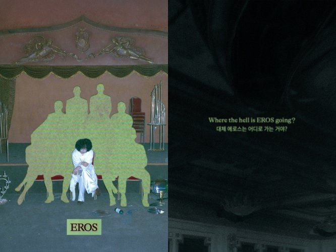 다른 이미지에는 '대체 에로스는 어디로 가는 거야?'(Where the hell is EROS going?)라는 의미심장한 메시지가 새겨졌다.