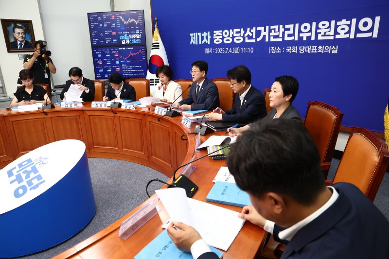 (서울=뉴스1) 금준혁 서미선 기자 = 더불어민주당 중앙당 선거관리위원회는 4일 첫 회의를 열고 8·2 전당대회 개최를 위한 세부사항을 의결했다.