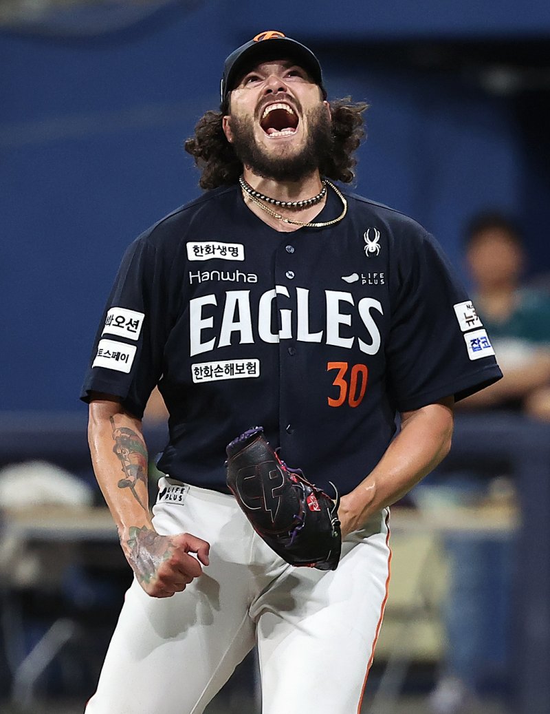경기 후 만난 폰세는 "7이닝까지 잘 던질 수 있었던 것은 포수 최재훈이 좋은 리드와 볼배합이 있었기 때문"이라며 배터리 호흡을 맞춘 최재훈에게 공을 돌렸다.