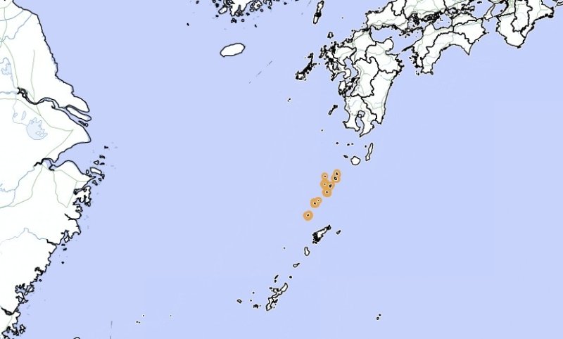 5일 오전 6시 29일 일본 도카라 열도에서 발생한 지진 (출처=연합뉴스)