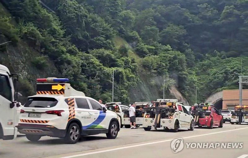 (춘천=연합뉴스) 이재현 기자 = 6일 오전 10시 52분께 강원 원주시 지정면 월송리 광주원주고속도로 광주 방면 46㎞ 구간 지정 3터널 안에서 렉서스 승용차와 스포티지 승용차 등 차량 7대가 연쇄 추돌했다.