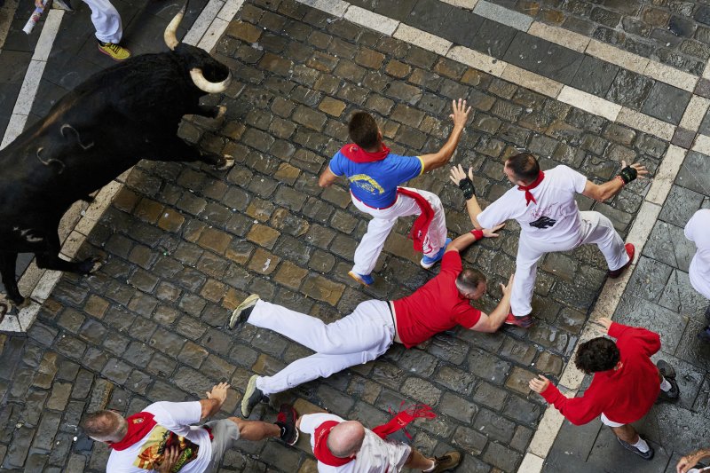 일부 참가자들은 빠른 속도로 달리는 황소를 피하려다 넘어지기도 했다.