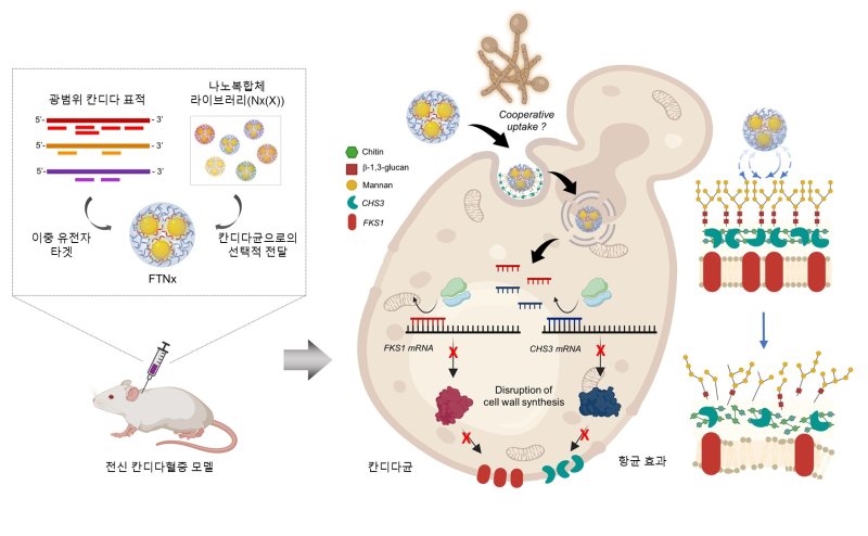 개발된 치료제는 전신 투여가 가능하며 유전자 억제 기술과 나노소재 기술을 융합해 기존 화합물 기반 약물들의 구조적 한계를 효과적으로 극복하고 칸디다균만 선택적으로 치료할 수 있다.