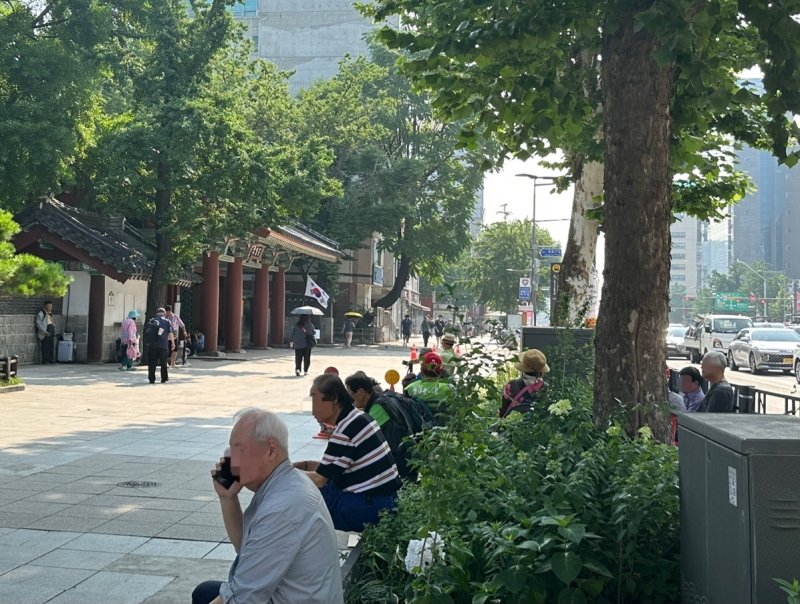 서울의 낮 최고기온이 36도를 기록한 8일, 박종현 씨(67·남)는 종로구 탑골공원 앞 길가에 털썩 앉아 말했다. 박 씨는 "집에 선풍기가 있지만 그거론 더위가 해결이 안 된다"며 "공원에 나오면 더위도 식히고 사람들하고 얘기도 하고 밥도 무료 급식으로 얻어먹을 수 있으니 온다"고 설명했다.