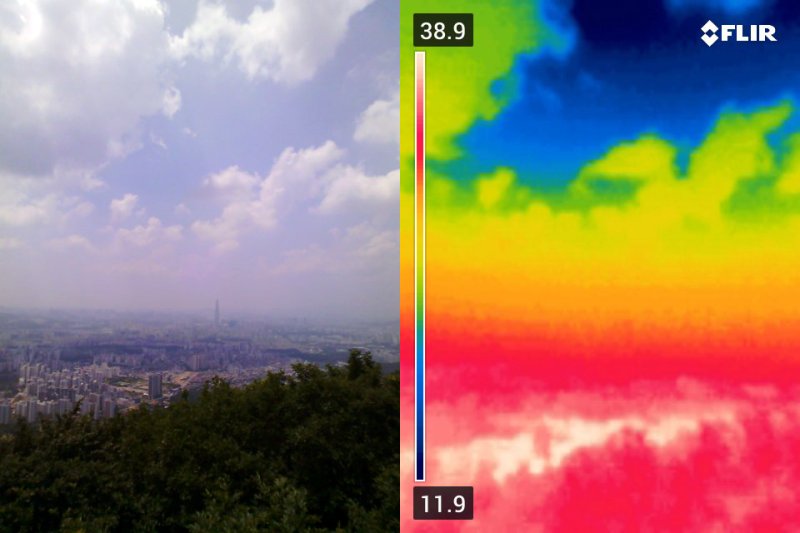 이날 남한산성에서 열화상 카메라로 본 도심은 뜨거운 태양에 달궈져 붉게 표시됐다. 열화상 카메라로 촬영한 사진은 온도가 높을수록 붉은색, 낮을수록 푸른색을 나타낸다.