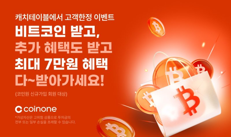 이번 이벤트는 오는 17일까지 캐치테이블 이용자를 대상으로 진행한다. 캐치테이블 애플리케이션(앱)에서 코인원 이벤트 배너를 클릭한 뒤, 이벤트 코드(2507CATCH)를 등록하고 코인원에 신규 가입하면 참여할 수 있다.