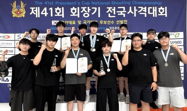 먼저 50m 공기권총 단체전에 출전한 김태엽(운동처방재활학과 4학년), 김태민(3학년), 원선재(2학년), 박서빈(엘리트스포츠학과 1학년) 선수는 1629점을 기록, 값진 은메달을 목에 걸었다..
