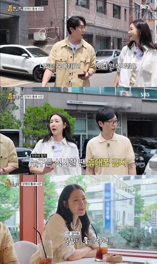 유재석은 "(최지우가) 중간 중간 훈육하는 듯한 느낌이다. 목소리에 위엄이 있다. 난 아이를 키워봐서 안다"며 공감했다. 최지우는 "지금 한창 훈육할 때다. 목소리가 커지면 안 된다"며 웃었고, 유재석은 "나도 잘 안다. 특유의 톤이 있다. 나도 (자녀들에게) 그렇게 말하면 안 되는데 자꾸 그런다. 좀 더 따뜻하게 얘기해야 하는데, 후회한다"고 했다.
