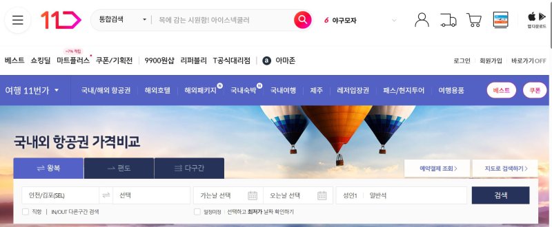 11번가는 2015년부터 실시간 항공권 예약 서비스를, 2017년에는 항공권 가격 실시간 비교 서비스를 도입해 운영해왔다.