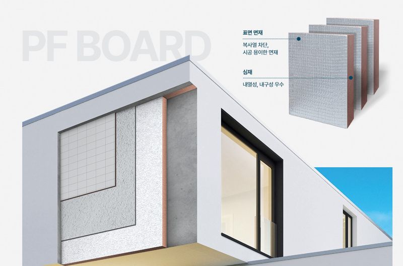 이 같은 흐름 속에서 휴그린 PF보드는 개정된 '준불연 성능 시험'을 통과하고, 실물모형 시험(KS F 8414)에서도 일정 시간 이상 화염을 견디는 내화 성능을 입증했다. 열전도율 0.020W/m·K의 뛰어난 단열 성능을 갖췄으며 지난 25년 이상 90% 이상의 성능을 유지하는 높은 내구성도 강점이다.