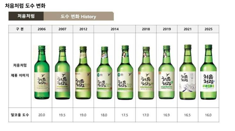 [파이낸셜뉴스] 한국 주류 시장에 20도 소주의 첫 시작을 알린 '처음처럼'이 알코올 도수를 16도로 낮추며 한층 부드러워진다.