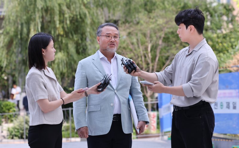 이 회장은 10일 오전 9시52분쯤 김건희 특검팀 사무실이 있는 서울 종로구 KT광화문웨스트빌딩에 도착했다.