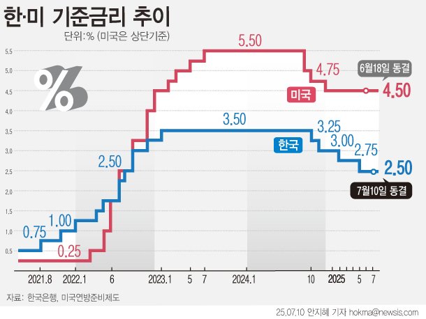 [서울=뉴시스]남주현 기자 = 한국은행 금융통화위원회는 10일 오전 서울 중구 한은 본부에서 7월 통화정책방향 회의를 열고 기준금리를 종전과 같은 2.50%로 동결했다.