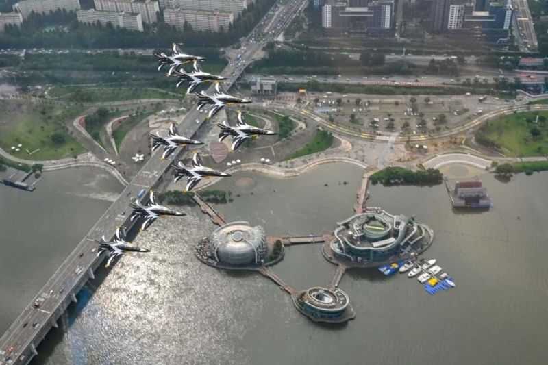 블랙이글스는 국내 초음속 항공기인 T-50B 8대로 팀을 꾸려 고난도 특수비행을 하는 과정에서 비행음이 발생한다.