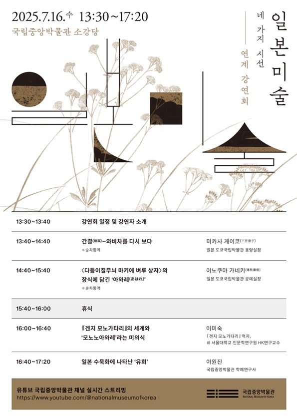 한·일 국교 정상화 60주년을 맞아 선보인 전시는 꾸밈·절제·감동·유희 4가지 시선을 중심으로 일본 미술에 담긴 아름다움을 조명한다. 이번 강연에서는 일본 미술 특유의 미(美)의식과 주요 전시품을 소개한다.
